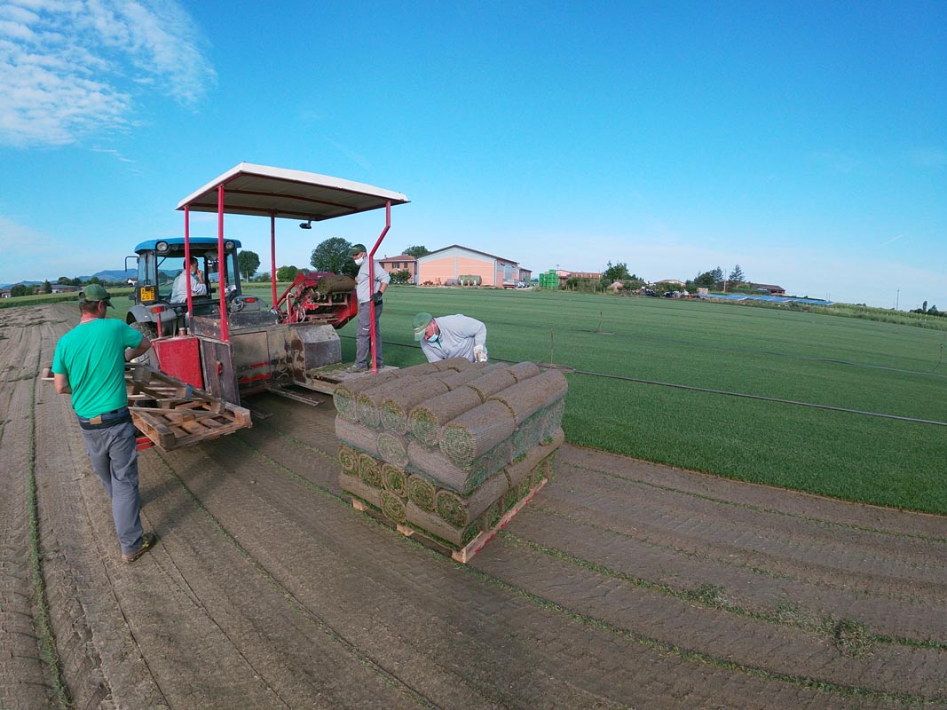 Prato per la residenza familiare a quello per allestimenti fieristici dedicando tante ore alla cura del seme che germoglia fino alla zolla imballata sul pallet pronta per il trasporto.